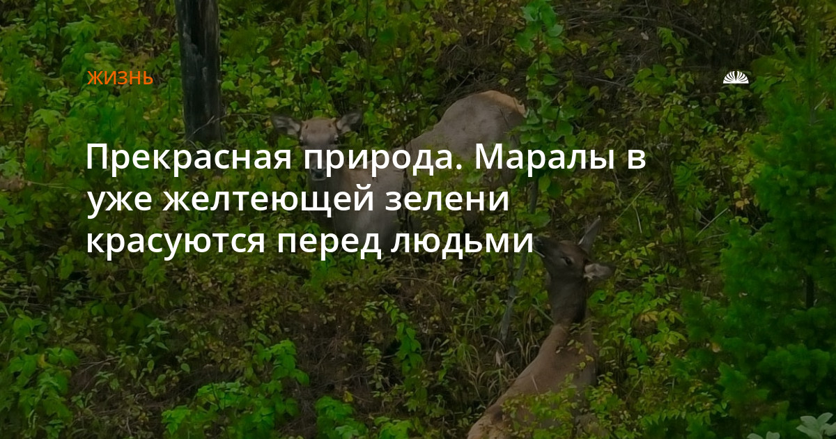 Прекрасная природа. Маралы в уже желтеющей зелени красуются перед людьми.