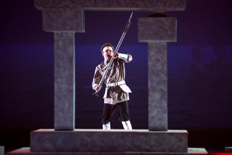 Одна только сценография говорит о чудовищном распаде. Конец времен, где смешивается древние памятники – Стоунхендж (по одной из версий, построенный древними римлянами), подвешена безглавая скульптура богини победы – Ника Самофракийская.