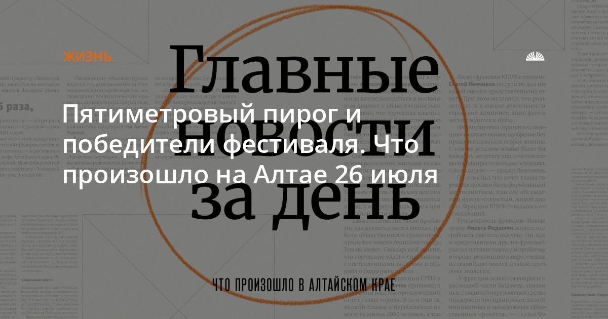 - В селе Сростки в рамках фестиваля «Шукшинские дни на Алтае» проходит яркий Праздник пирога. Пятиметровый пирог был отдан гостям.