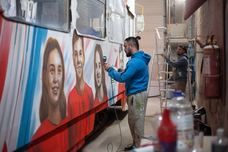 - Художник Николай Замятин уже заканчивает работу над новым трамвайным вагоном. 1 декабря он выйдет на линию.