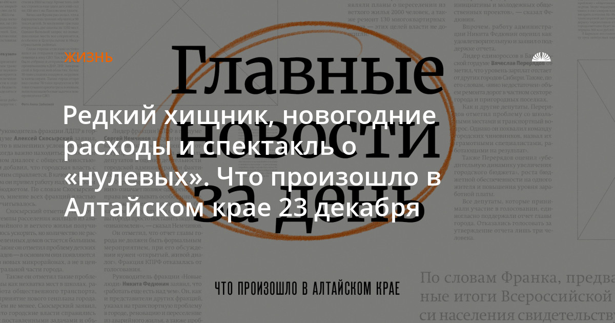 Редкий хищник, новогодние расходы и спектакль о «нулевых». Что произошло в Алтайском крае 23 декабря