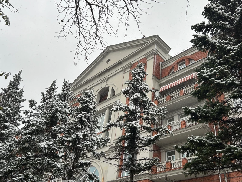 - Пасмурное небо и снегопад;