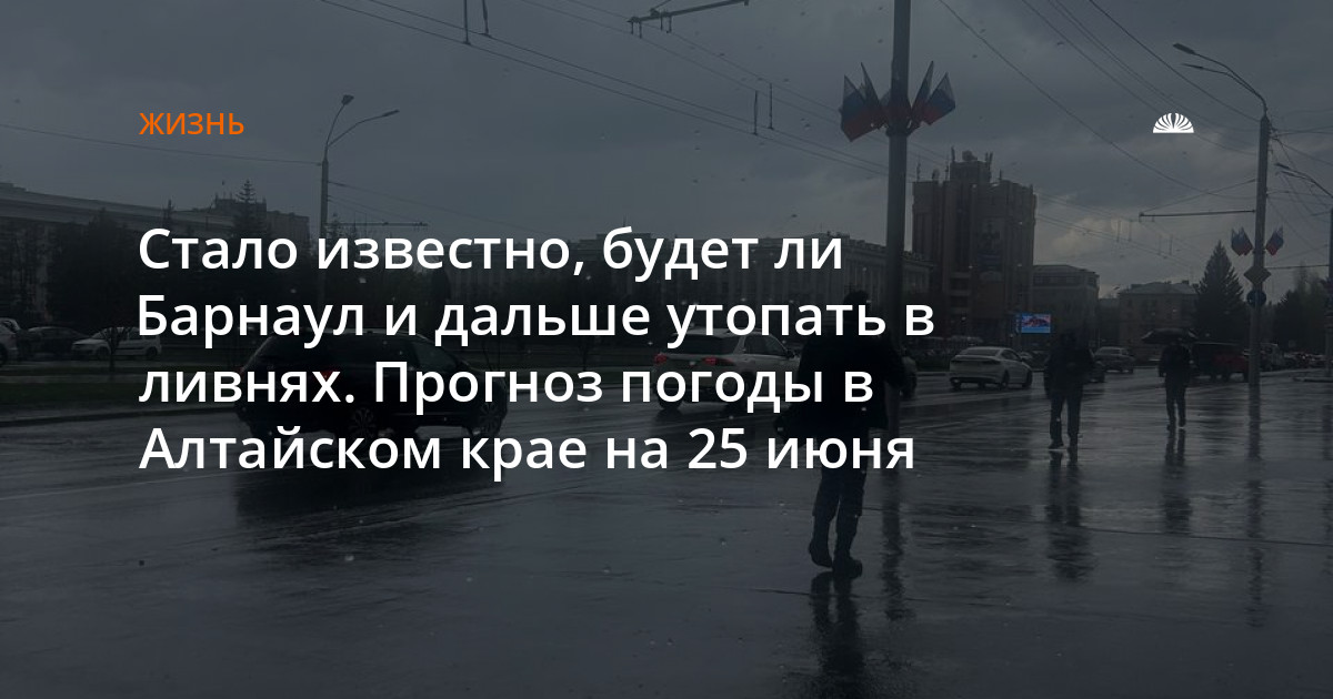 Барнаульский воздух прогреется до +19 ...+25 градусов, но вечерний дождь с грозой принесет прохладу. Ветер будет дуть со скоростью 4 м/с.