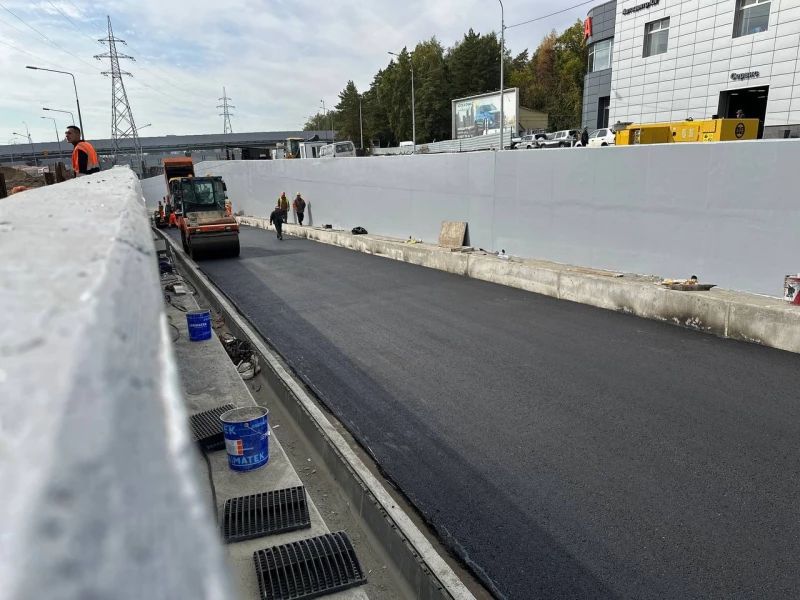 Рабочие закончили гидроизоляцию тоннеля на Змеиногорском тракте и начали укладывать первый слой асфальта. Далее сделают соединение с дорогой и продолжат асфальтирование. Уже покрыли двумя слоями асфальтобетона участок тоннеля, который сделали ранее. Параллельно возводят поддерживающие стены. Полностью тоннель планируется сдать до конца сентября.