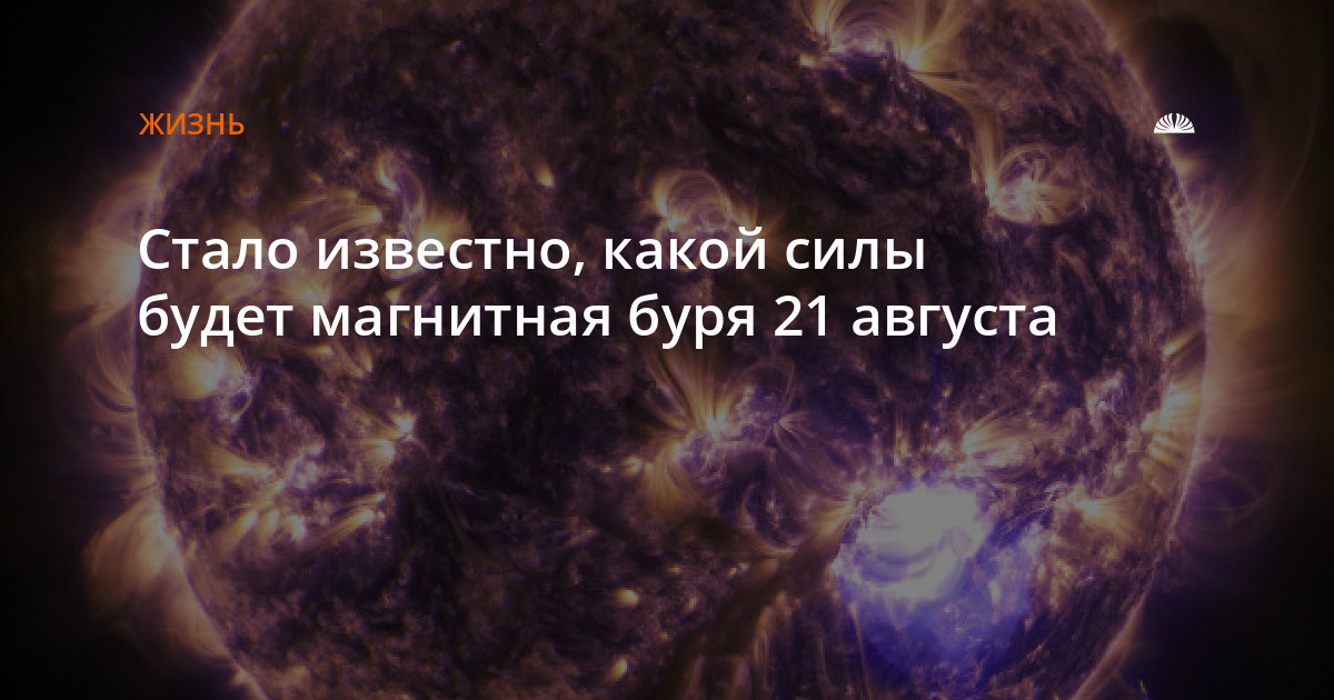 По прогнозам специалистов Лаборатории солнечной астрономии ИКИ РАН и ИСЗФ СО РАН, 21 августа 2025 года возможна слабая магнитная буря уровня G1 с индексом Kp=5. Вероятность ее появления оценивается в 26%. При этом менее выраженные геомагнитные возмущения могут возникнуть с вероятностью 35%, а спокойная магнитосфера — с вероятностью 39%.