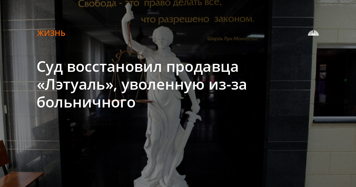 - восстановил истицу на работе в ООО «Алькор и Ко» (управляющая компания сети «Лэтуаль»);