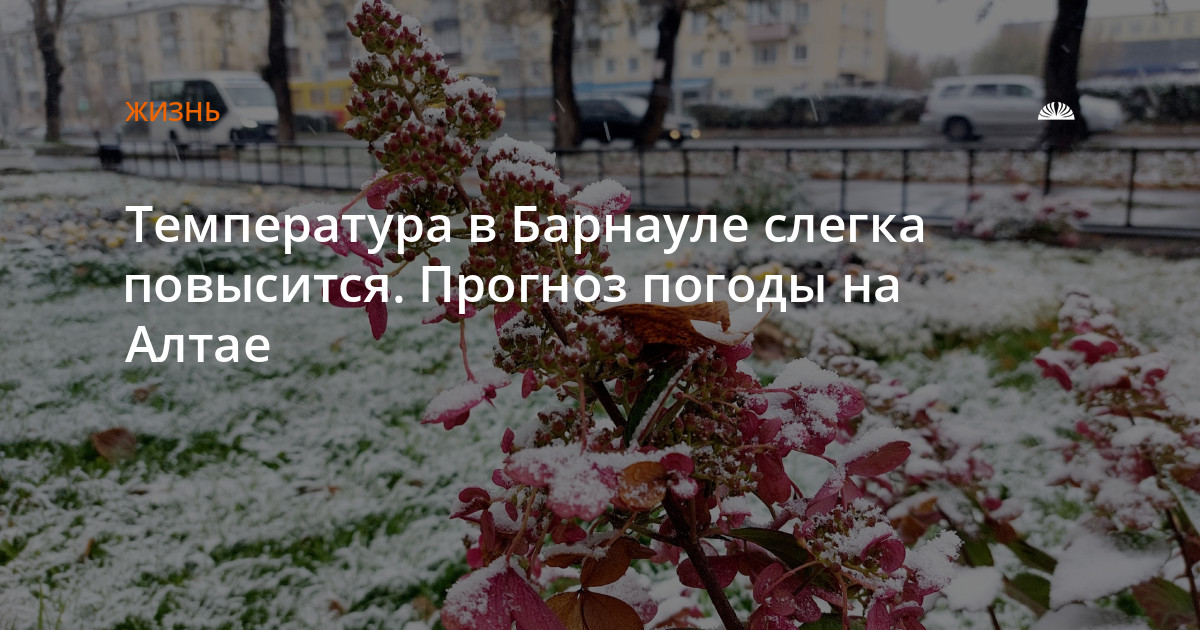 В Барнауле температура поднимется до +3... +5 градусов. Прогнозируется небольшой мокрый снег, вероятны гололедные явления. Гололедица возникнет местами на дорожном покрытии. Будет дуть юго-западный ветер скоростью 3-8 м/с.
