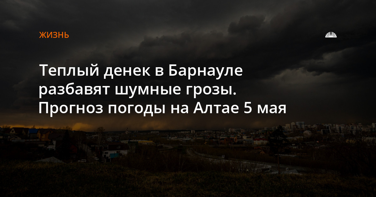 В Барнауле воздух прогреется до +19...+21 градуса, возможен небольшой дождь и гроза при северо-западном ветре скоростью 8–13 м/с.