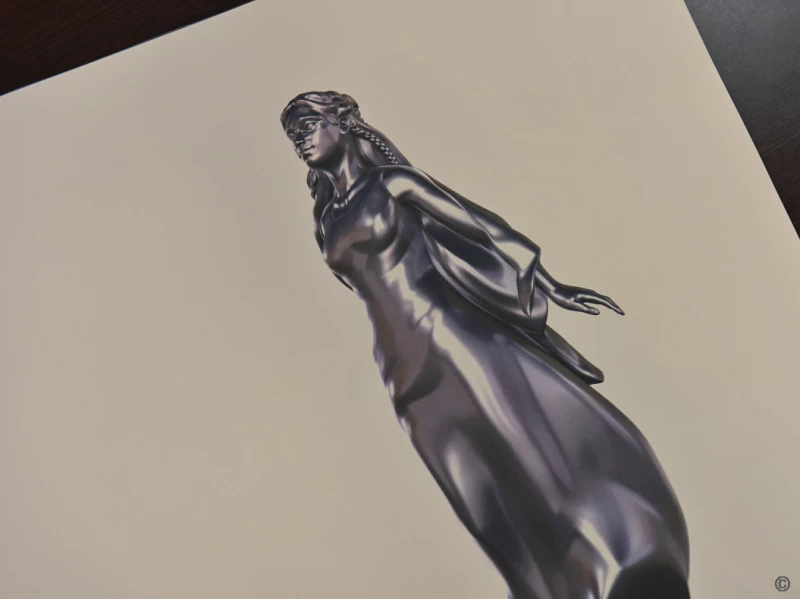 Высота скульптуры, выполненной в виде женской фигуры, символизирует реки, составит четыре м. Материал изготовления — легированная сталь с патиной, элементы окружающей площадки украсят узорами русла реки. Вокруг расположат бронзовые круги с названиями городов, расположенных вдоль течения Оби.