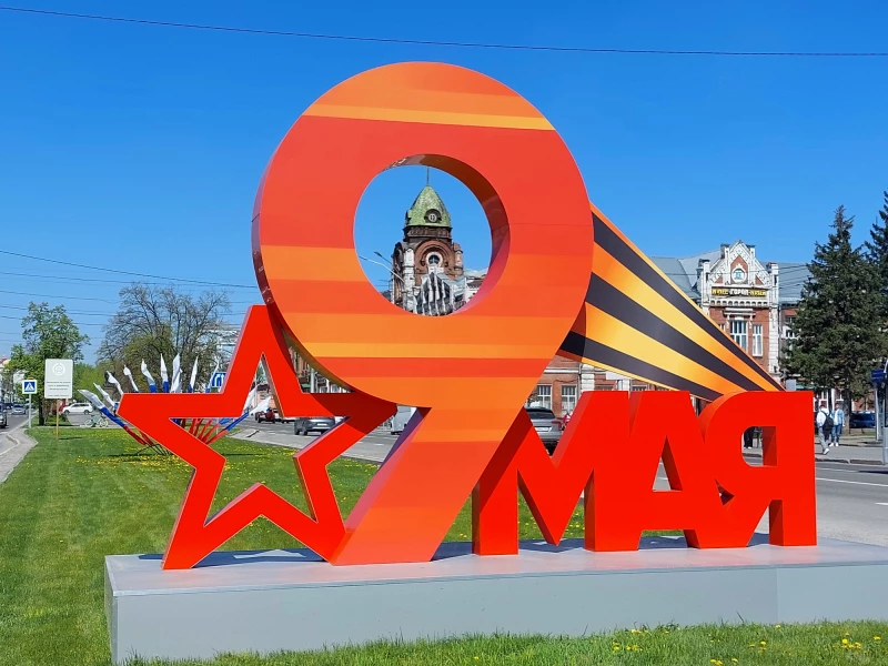 В преддверии юбилея Великой Победы Барнаул украсили символизирующими украшениями. Прогуливаясь по городу можно прочувствовать всю атмосферу праздника. В центре города украшения появились на площади Победы, Арбате, проспекте Ленина, возле театра драмы, а также у краевой администрации. Некоторые рестораны и кафе повесили ленты и плакаты на входных группах.