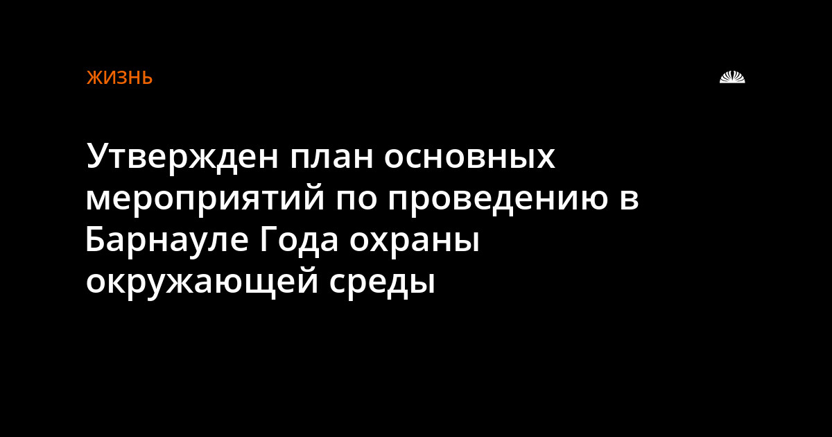 В администрации города был утвержден план основных мероприятий по проведению в Барнауле Года охраны окружающей среды. В соответствии с данным планом будет проведено более 60 мероприятий различной направленности: по охране атмосферного воздуха, водных объектов, безопасному обращению с отходами, по охране и восстановлению лесопарковых зон, а также экологическому просвещению и образованию населения.