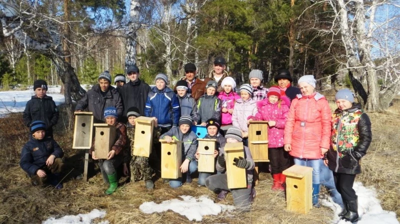 Занятие необычное: вместо стен учебного заведения – сосны-великаны Кулундинского ленточного бора, вместо учебников и тетрадок – скворечники, сделанные заранее самими ребятами, вместо столовой – обед на лесной опушке.