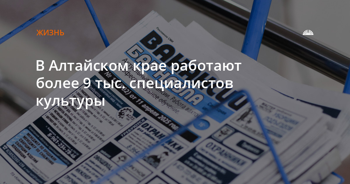 В Алтайском крае в сфере культуры работают 9300 человек, при этом в отрасли открыты 300 вакансий.
