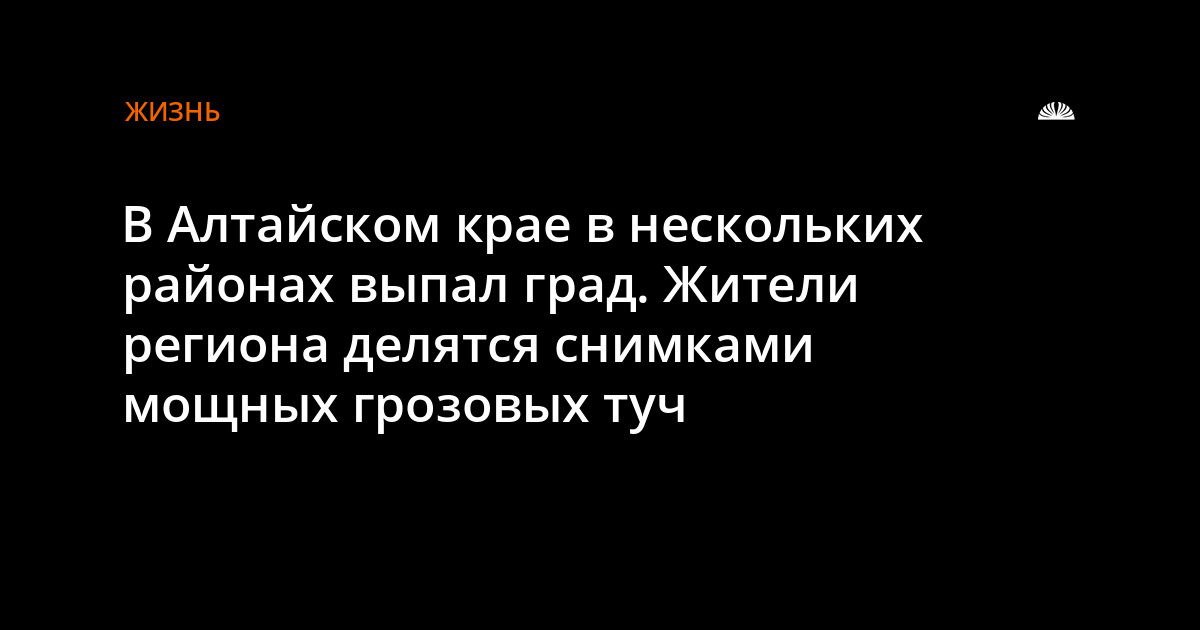 Вечером 25 августа в Алтайском крае прошли дожди с грозами и градом. В социальных сетях жители региона показывают размеры градин и красивые грозовые тучи. По данным очевидцев в сообществе Barnaul22, град прошел в Панкрушихинском, Суетском и Немецком национальном районах.