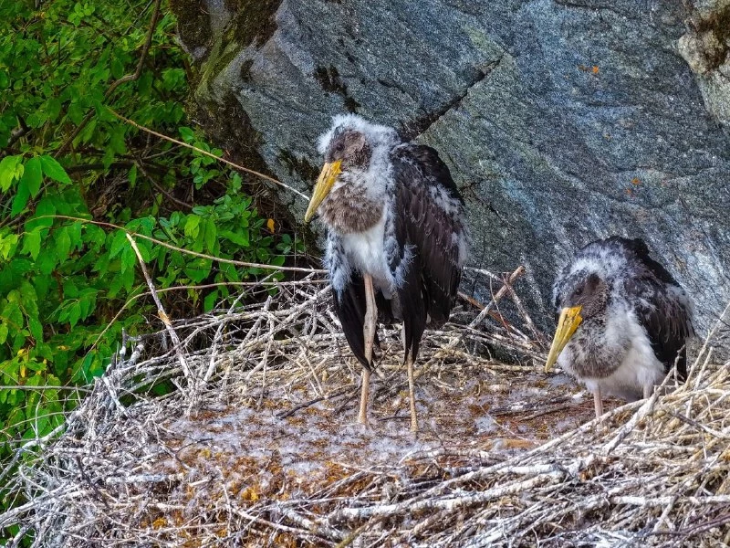 Первое гнездование черного аиста научные сотрудники видели только в августе прошлого года. Тогда у молодой пары появились четверо птенцов. Родители удачно их выкормили, и они покинули гнездо. Олег Митрофанов отметил: