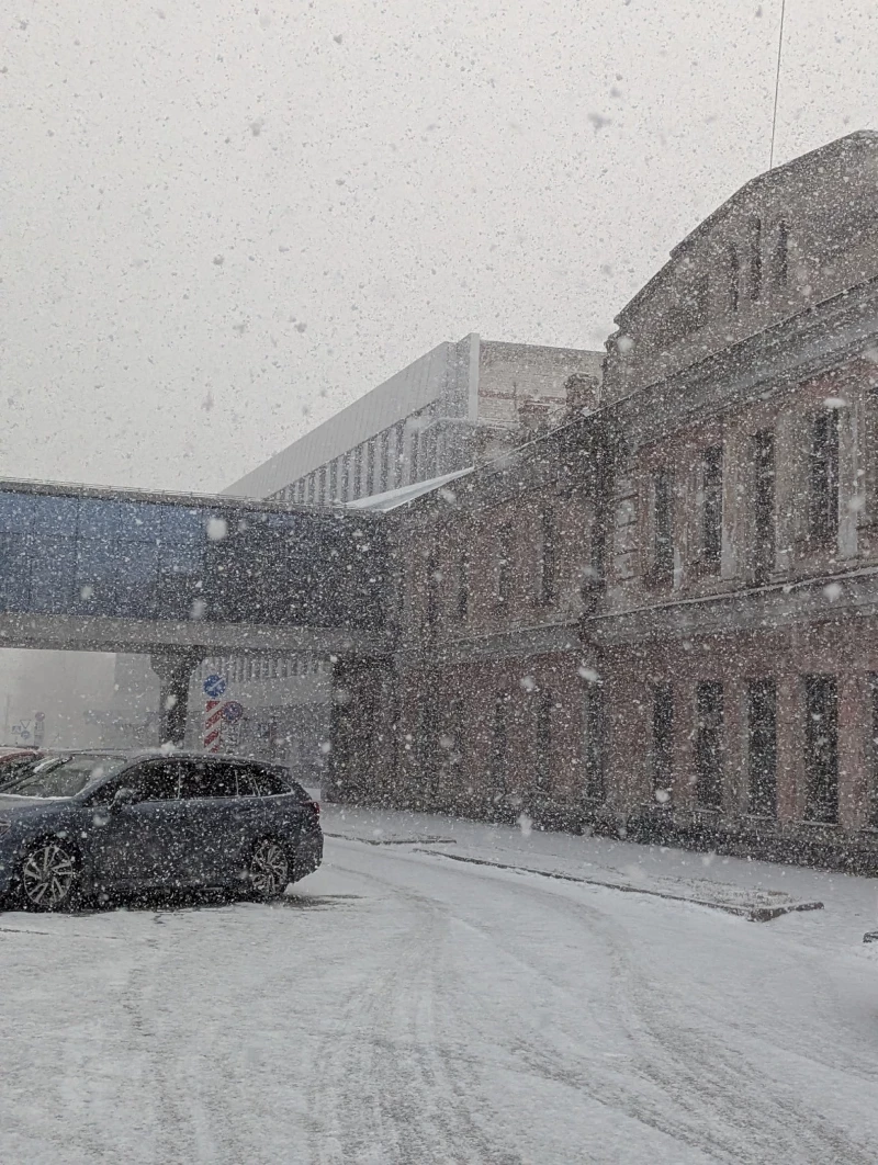 Вечерний снегопад на некоторое время превратил городские пейзажи в картинки с новогодних открыток, но довольно быстро закончился.