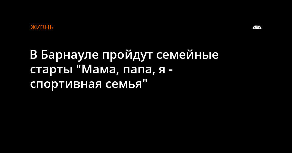 Семейные старты "Мама, папа, я – спортивная семья" пройдут в Алтайском крае второй раз. Конкурс направлен на пропаганду спорта и семейных ценностей. Состязания проведут в два этапа: муниципальный (до 1 ноября) и краевой.