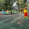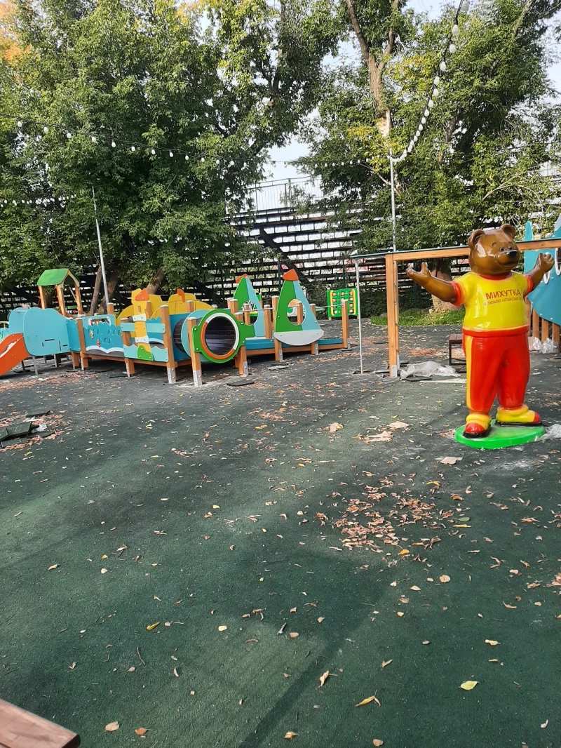 Сейчас на площадке уже установили маленькую горку, яркую и улыбающуюся статую Михутки и игровой комплекс в виде тоннеля.