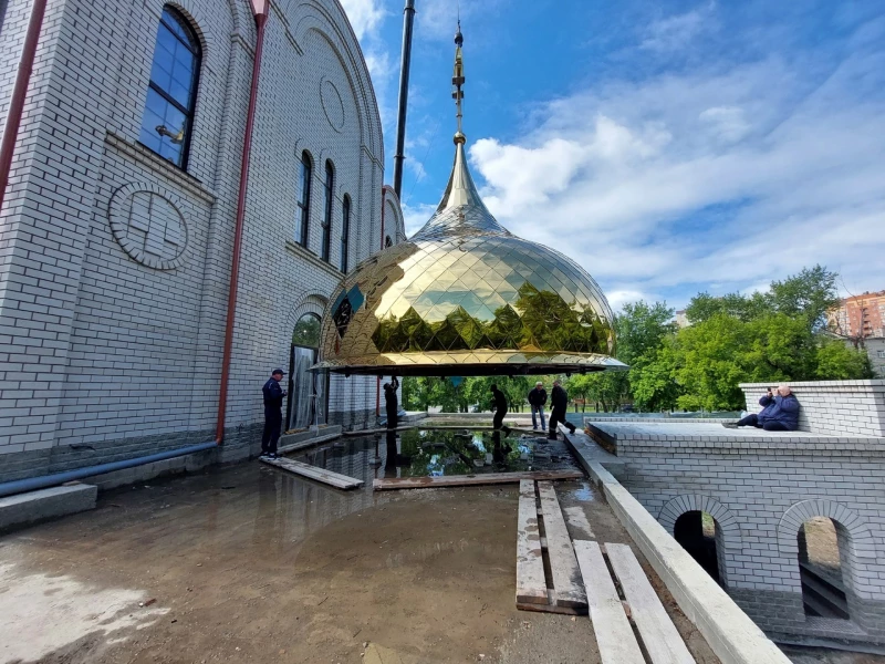 Наш корреспондент снял видео внутри храма, кроме голых стен там пока ничего нет.