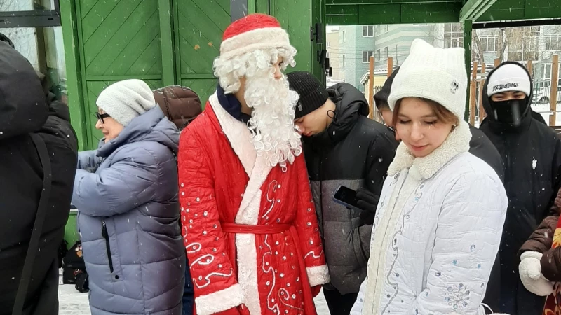 Участниками стали необычные команды из студентов и школьников в образах Деда Мороза и Снегурочки.