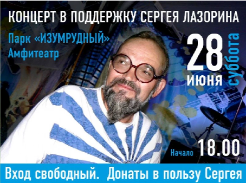 Каждый пришедший на концерт сможет внести свой вклад в сбор средств, которые будут направлены на лечение Сергея Лазорина.