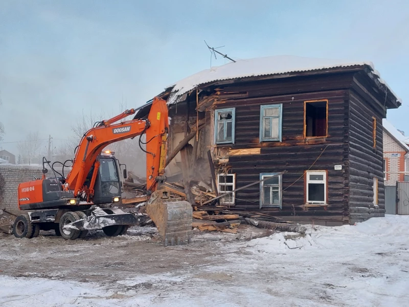 В центре Барнаула сносят ветхий дом под новый ЖК. Видео