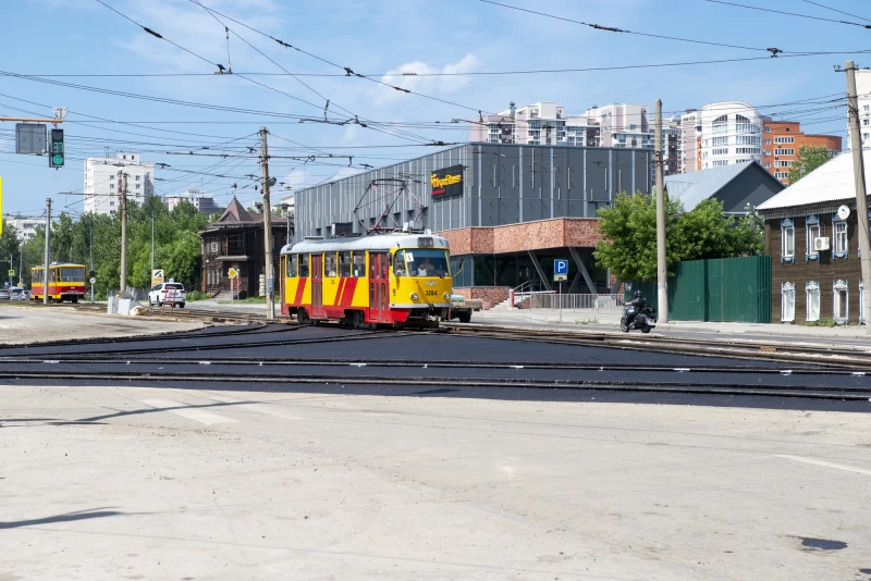 Специалисты приступили к укладке нового асфальтового покрытия на участке трамвайных путей. По сообщению администрации города, общая площадь обновленного покрытия составит 838 кв. м.
