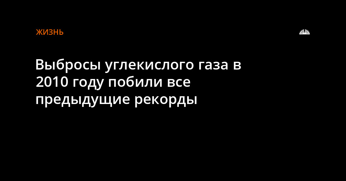 Выбросы углекислого газа в 2010 году побили все предыдущие рекорды и составили 30,6 гигатонны, сообщается в пресс-релизе Международного