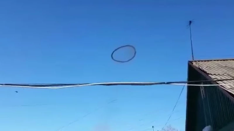 Серо-черные дымное кольцо удивило и напугало местных жителей. В воздухе над поселком, по словам очевидцев, его наблюдали около 15 минут.