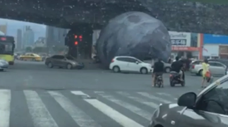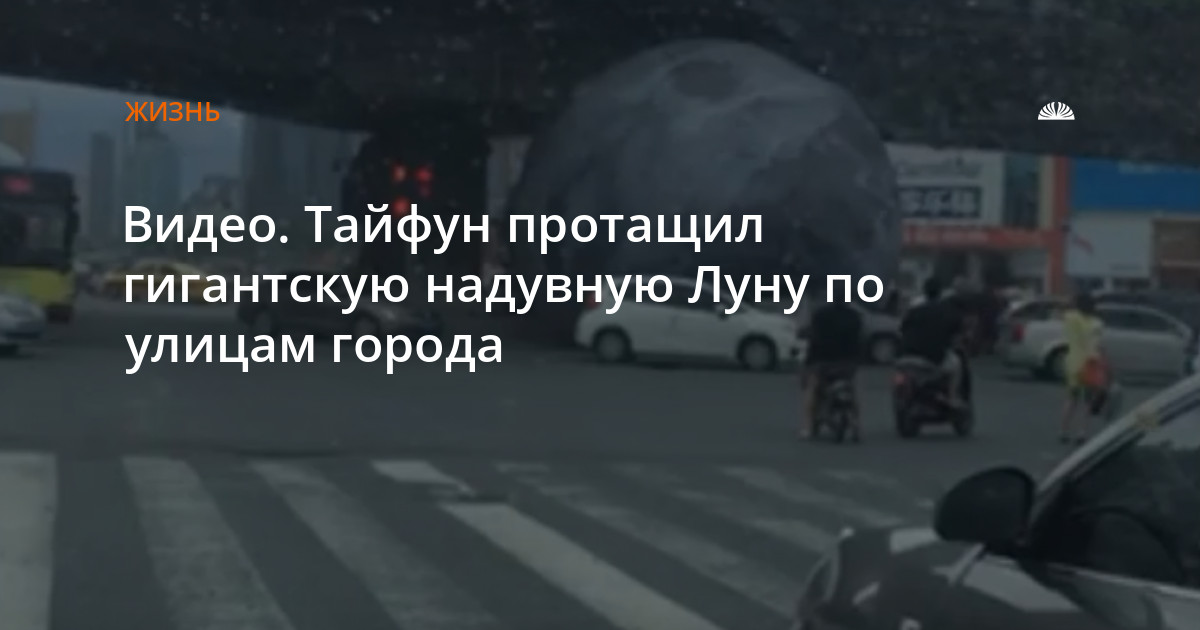 модель спутника земли — надувную Луну — установили в городе Фучжоу (провинция Фуцзянь на востоке Китая). Однако из-за начавшегося тайфуна макет сорвался с места и стремительно понесся по улицам, накрывая собою автомобили и едва не раздавив людей.