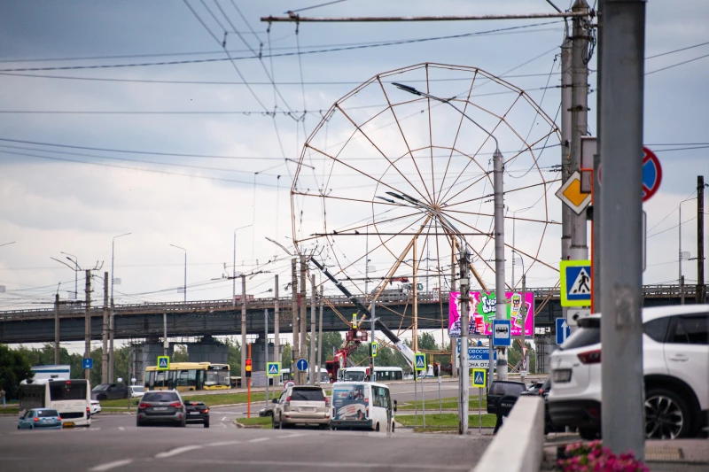 У набережной на горизонте теперь видно не только Новый мост, но и колесо обозрения, выкрашенное золотистой краской. Его разместили на месте троллейбусного кольца, которое по этой причине и хотят перенести.