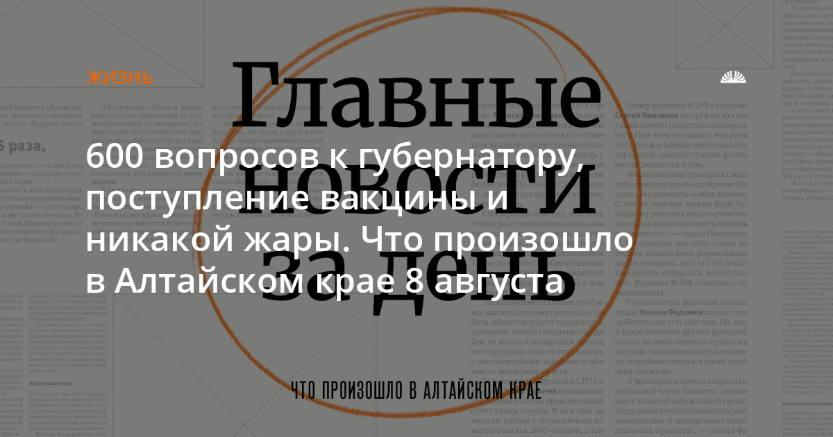 - Виктор Томенко сообщил, что жители Алтайского края прислали уже более 600 вопросов к его «Прямой линии», которую губернатор проведет 14 августа.