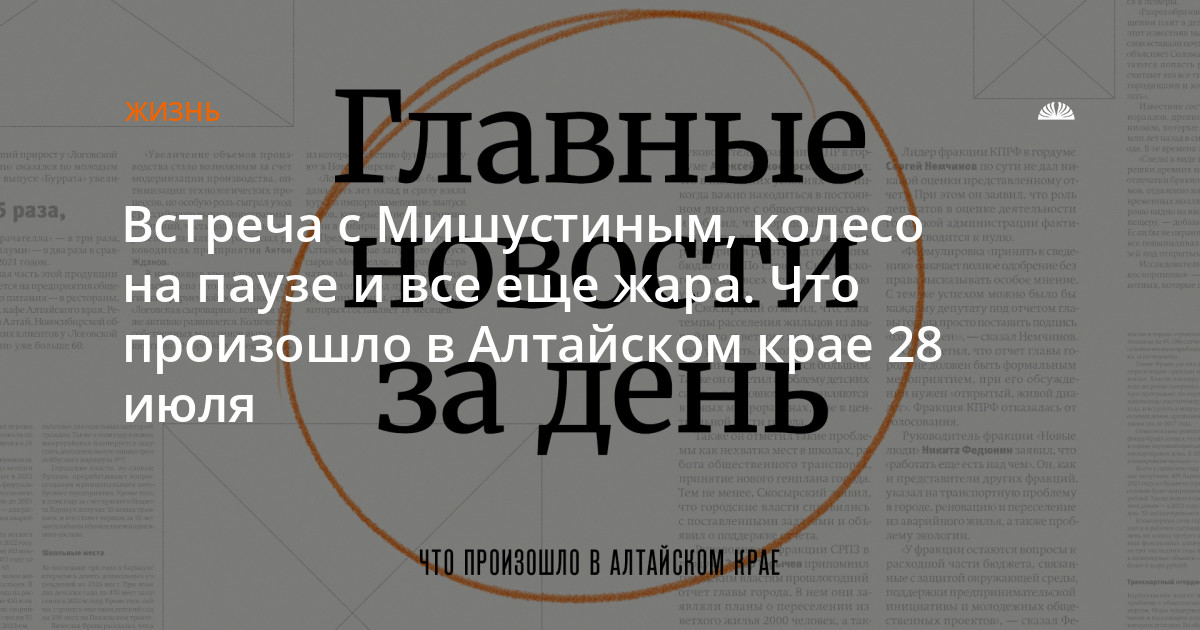 - Премьер-министр РФ Михаил Мишустин лично встретился с Виктором Томенко. Они обсудили социально-экономическое развитие региона, в том числе модернизацию Центра охраны материнства и детства, реконструкцию Чуйского тракта и поддержку туристической отрасли.