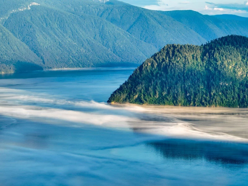 Климат меняется, в прошлом июле вода у села Яйлю прогрелась до +24 градусов, что было зафиксировано лишь однажды в 1995 году. Обычно Телецкое озеро остается холодным даже летом.