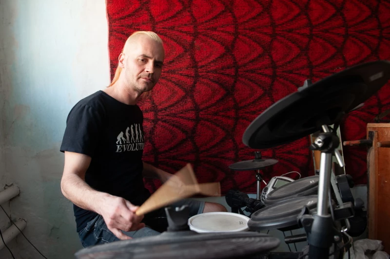 Чтобы не потерять связь с музыкой, Александр развернул здесь мини-школу для местных подростков. Девчонке преподает гитару, пацану — барабаны.